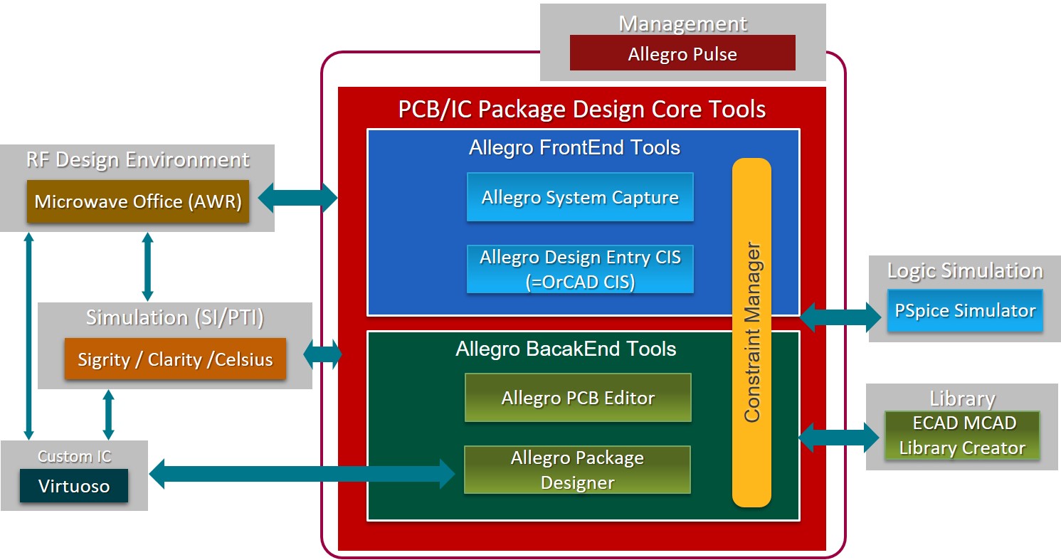 高速化、複雑化、微細化が進むなか、IC-PKG-PCB協調やRF設計、SI/PTI解析環境との連携により、設計品質の向上とTAT短縮を実現します。